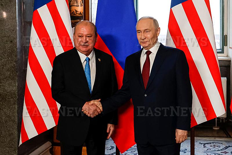 Russian President Vladimir Putin welcomes Malaysia`s King Sultan Ibrahim during their meeting at the State Hermitage Museum in Saint Petersburg on January 26, 2026. (Photo by ANATOLY MALTSEV / POOL / AFP)