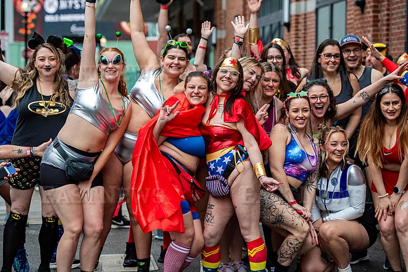 Runners make their way around Fenway Park in their underwear and festive costumes during the Cupid`s Undie Run in Boston, Massachusetts, on February 21, 2026. The event raises money for neurofibromatosis research (NF). (Photo by Joseph Prezioso / AFP)