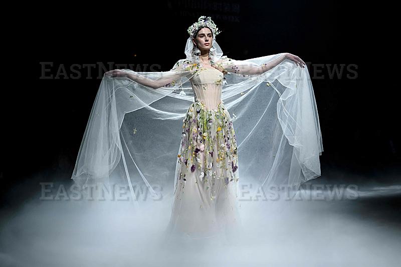 A model displays a creation from the Heaven Gaia collection by Xiong Ying during China Fashion week in Beijing on March 20, 2026. (Photo by WANG Zhao / AFP)
