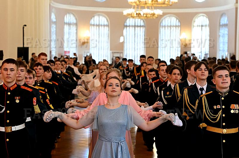Participants attend the annual Cadet Ball at the Tavrichesky Palace in Saint Petersburg on March 20, 2026. 300 cadet pairs of Naval, Border, Combined Arms, Emergency Ministry, and Cossack cadet classes from Russia, Mariupol, and Belarus and Boarding school for girls of the Russian Ministry of Defence gathered for a ball dedicated to the 325th anniversary of cadet education in Russia. (Photo by Olga MALTSEVA / AFP)